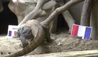 السحلية العملاقة "أرانج" آثارت مخاوف مخاوف الفرنسيين بعد أن تكهنت بنتيجة التعادل خلال مباراة الغد التي تجمع منتخب "الديوك بألبانيا