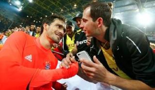 جماهير بوروسيا دورتموند تلتقط الصور التذكارية مع لاعب الفريق السابق ماتس هوملز المنتقل إلى صفوف بايرن ميونخ عقب السوبر الألماني