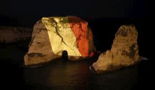 بيروت تضيء صخرة الروشة أحد أهم معالمها بألوان علم بلجيكا السبت في لفتة تضامن بعد التفجيرات الانتحارية في بروكسل