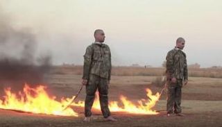 تنظيم داعش الإرهابي ينشر فيديو يصور إعدام جنديين تركيين حرقا بعد وقعوهما في الأسر بمدينة حلب.