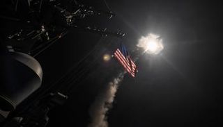 البنتاجون يعلن قصف مطار الشعيرات العسكري بالقرب من حمص السورية، بـ59 صاروخ توماهوك.