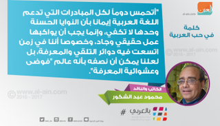 قال الكاتب والناقد المصري محمود عبد الشكور لـ"العين" إن تحدي الحفاظ على لغتنا العربية أصبح اليوم أكبر ، ولابد أن تكون المبادرات أكثر في كل الاتجاهات.
